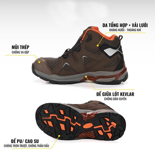 • Mũi giày: Làm bằng vật liệu composite chống dập ngón và nhẹ hơn
