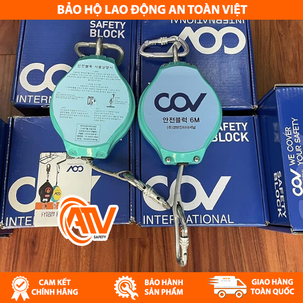 Dây Cứu Sinh Tự Co COV trung bình có 2 loại chiều dài 6m và 8.5m có chất liệu móc khóa thép mạ kẽm chắc chắn, bảo vệ tối đa cho người lao động làm việc trong môi trường làm việc.