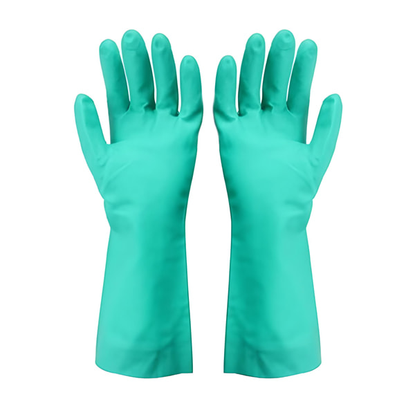 - Găng được làm từ chất liệu cao su nhân tạo dẻo, bền, chống hóa chất và bảo vệ tay khỏi các hóa chất độc hại