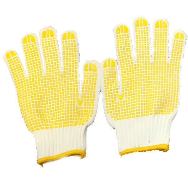 Găng Tay Len Phủ Hạt Nhựa Vàng
