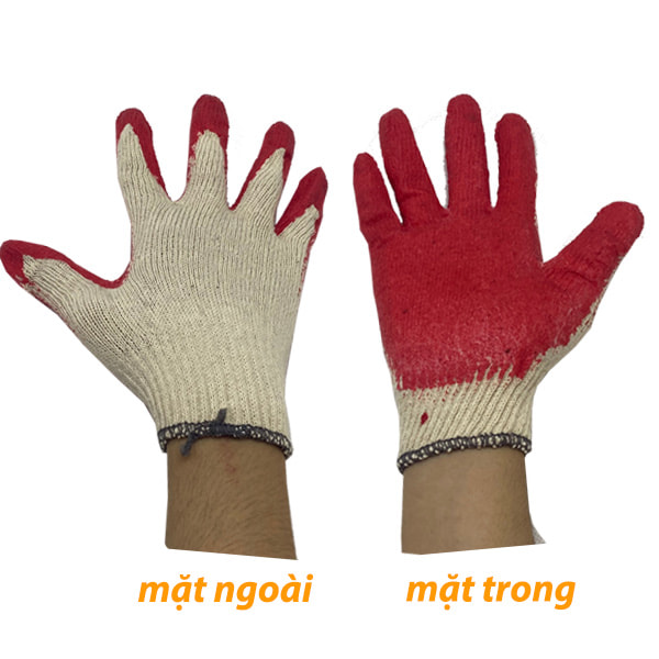 Được phủ lớp cao su đỏ tăng khả năng chống trơn, cầm nắm tốt. Sử dụng trong các ngành nông nghiệp, công nghiệp, cơ khí, luyện kim, xây dựng, bốc vác.
