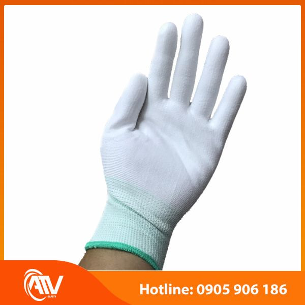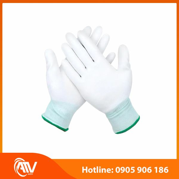 Thông tin chi tiết sản phẩm Găng tay Polyester màu trắng (POW) phủ PU bàn