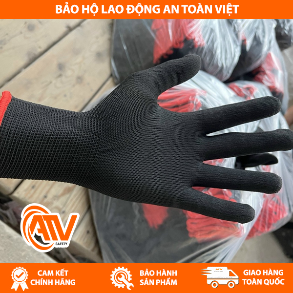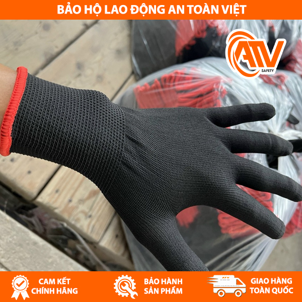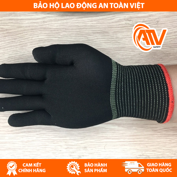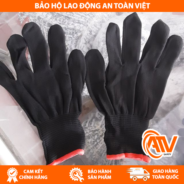 Găng Tay Sợi Màu Đen thiết kế ôm sát đôi tay giúp dễ dàng cầm nắm và tránh trượt khi làm việc trong môi trường ẩm