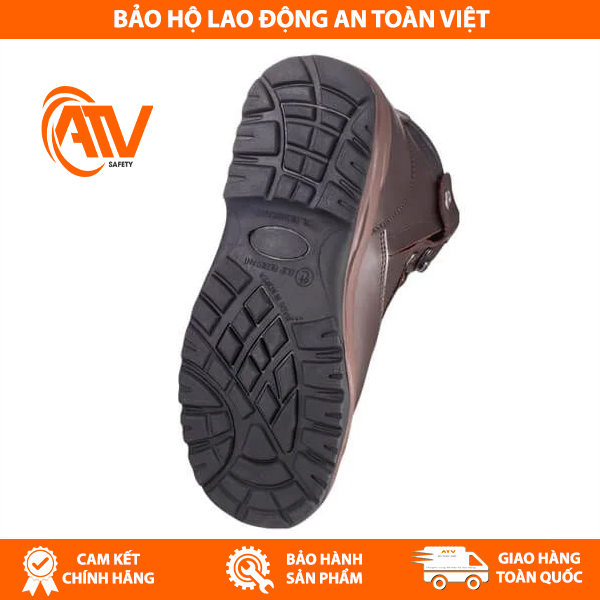 Đế giày được chế tạo từ cao su chịu mài mòn cao với thiết kế là đường cong hợp lý giúp người mang có thể di chuyển linh hoạt và giảm bớt áp lực lên bàn chân khi di chuyển. Mũi giày được trang bị lớp thép bảo vệ tối ưu.