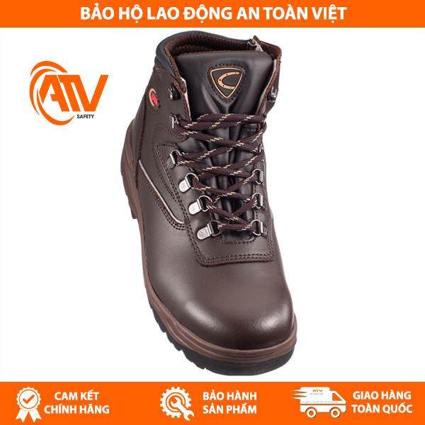 Bên ngoài mũi giày làm từ da tổng hợp cao cấp, có độ bền cao và chống thấm nước, mũi có thiết kế bo tròn, mang lại sự thoải mái cho ngón chân và phù hợp với các tiêu chuẩn an toàn.