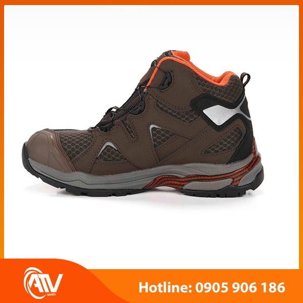 Thân giày được làm từ Aldo kết hợp với vải lưới giúp tăng cường độ thoáng khí, mang lại sự thoải mái trong điều kiện làm việc nóng bức. Thiết kế màu nâu sẫm kết hợp với các đường viền màu cam và vàng nổi bật tạo nên vẻ ngoài thời trang và chuyên nghiệp.