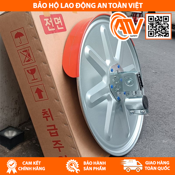 Mí và viền được sơn tĩnh điện màu cam nổi bật, tăng tính an toàn và dễ nhận diện. Khung và giá đỡ cũng được làm từ thép không gỉ SUS304, đảm bảo tính chắc chắn và tuổi thọ dài lâu. Sản phẩm phù hợp cho các khu vực cần tăng cường quan sát như bãi đỗ xe, ngã tư và giao lộ nguy hiểm.