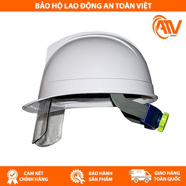 Điểm nhấn đặc biệt của sản phẩm là kính bảo hộ được tích hợp trực tiếp vào mũ, mang đến sự tiện lợi tối đa cho người sử dụng. Cơ cấu nâng hạ kính linh hoạt giúp người dùng dễ dàng điều chỉnh vị trí của kính để phù hợp với từng công việc.