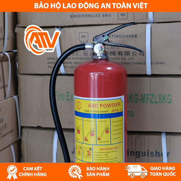 Bình chữa cháy bằng bột ABC 4kg loại bình nhỏ cầm tay sử dụng bột chữa cháy dạng ABC với chất lượng cao cho hiệu quả dập lửa tốt hơn, đặc biệt các chất cháy dạng rắn