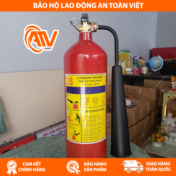- Trọng lượng Khí chữa cháy CO2 trong bình: 3kg.