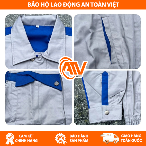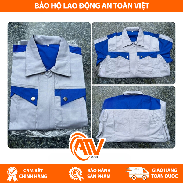 Sản phẩm quần áo bảo hộ PR03 độc đáo với màu sắc xám dễ mặc, kết hợp cùng xanh dương nhã nhặn. Màu xanh dương trải đều ở phần cầu vai, cánh tay và phần nắp túi trước, tạo điểm nhấn tươi trẻ cho bộ quần áo.