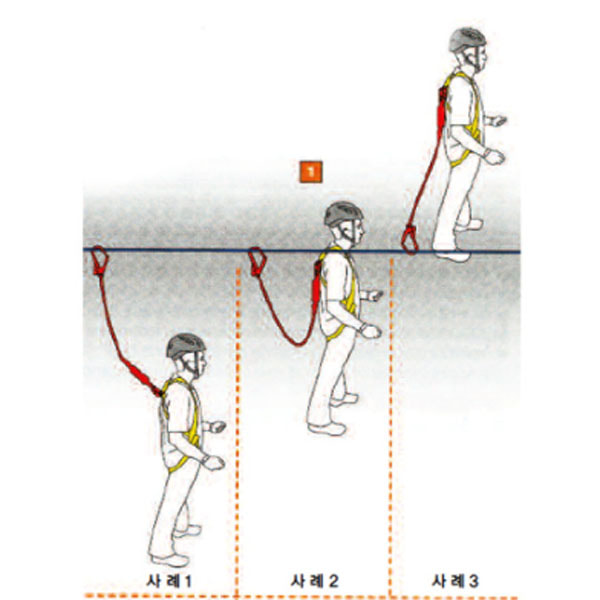Trường hợp 3: Khi vị trí của giá đỡ thấp hơn vòng D của dây đai buộc phải sử dụng bộ phận giảm sốc của dây đai an toàn để rơi