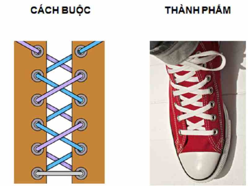 2. Kiểu buộc "chữ thập kép": Tăng cường độ an toàn và cố định cho đôi giày