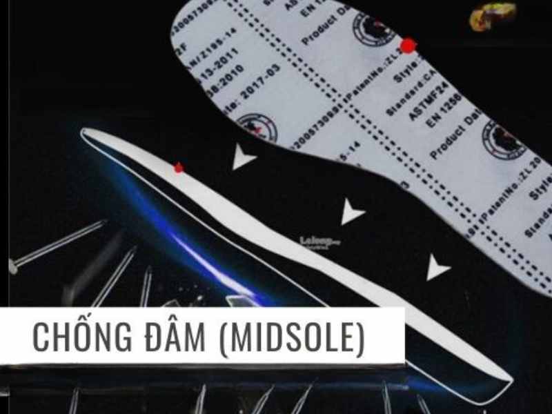 - Bảo vệ chống đâm xuyên: Lớp lót này được thiết kế để chống lại các mối nguy hiểm từ các vật nhọn như đinh, sắt, thủy tinh vỡ hoặc các mảnh vụn sắc nhọn khác có thể gặp phải trên mặt đất. Khi bước lên những vật này, lớp lót chống đâm xuyên sẽ ngăn chúng đâm qua đế và gây thương tích cho bàn chân.